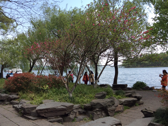 上午十點(diǎn),我們乘船游西湖,泛舟風(fēng)韻萬千“淡妝濃抹總相宜”的西子湖,遠(yuǎn)觀三潭印月、阮墩環(huán)碧、湖心亭、孤山煙雨,漫步桃紅柳綠的蘇堤,品味蘇東坡“間株楊柳間株桃”之詩境。