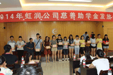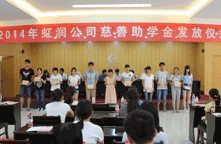 2014年8月22日,虹潤(rùn)公司一年一度的“圓夢(mèng)助學(xué)行動(dòng)”捐資助學(xué)儀式在虹潤(rùn)科技園辦公大樓四樓禮堂隆重舉行。順昌縣委副書記易才卿、順昌縣關(guān)工委主任黃春娣、順昌縣政協(xié)副主席黃為雄、順昌縣文體局局長(zhǎng)李元生、團(tuán)縣委書記吳詩(shī)源、順昌縣工會(huì)副主席蘭榮妹、虹潤(rùn)公司董事長(zhǎng)林善平以及相關(guān)部門領(lǐng)導(dǎo)出席了儀式。