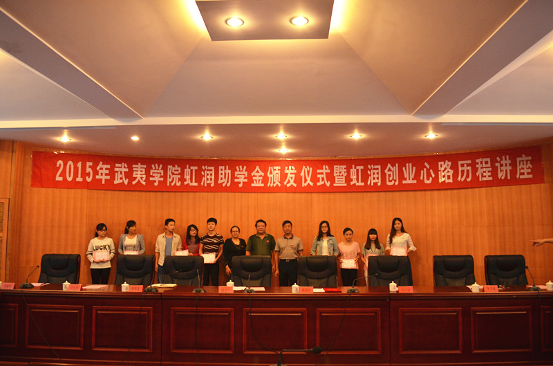 9月15日下午,我校2015年虹潤助學(xué)金頒發(fā)儀式在圓型會議室隆重舉行。校黨委副書記姚進(jìn)生,校董事會董事、福建順昌虹潤精密儀器有限公司董事長林善平先生,校董事會常務(wù)副董事長郭翠蓮,校董事會秘書長何長輝,相關(guān)部門領(lǐng)導(dǎo)及各學(xué)院師生代表參加了頒發(fā)儀式。儀式由學(xué)生處副處長劉廉明主持。