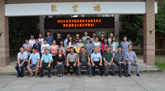 姚進(jìn)生、林善平等與會領(lǐng)導(dǎo)為獲得虹潤助學(xué)金的同學(xué)頒發(fā)了證書。林善平用自己的創(chuàng)業(yè)歷程告訴同學(xué)們要尊重自我,在暫時的逆境中砥礪品格,磨練意志,用自己的努力不斷增長知識和才干,在以后的人生歷程中選擇更輝煌的道路。