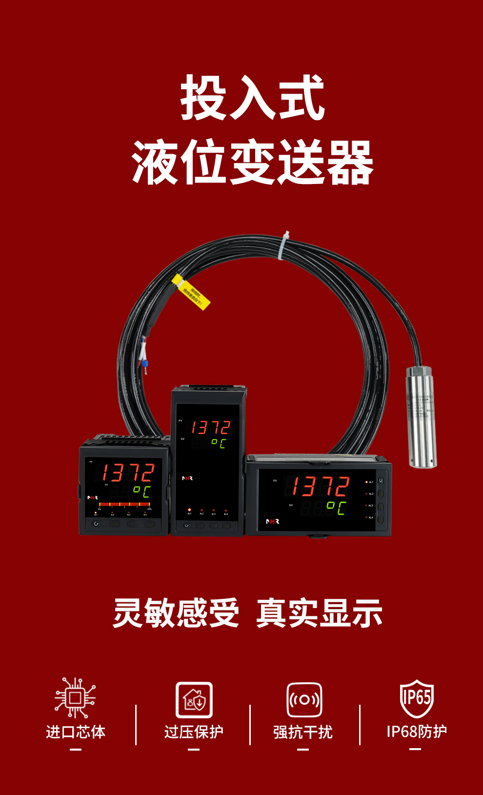 虹潤公司是專業(yè)生產(chǎn)液位變送器的國家專精特新“小巨人”企業(yè),生產(chǎn)的投入式液位變送器,具有采用進(jìn)口芯體,精準(zhǔn)測量,過壓保護(hù),高抗干擾,IP68防護(hù)等級等特點(diǎn)。產(chǎn)品獲得一種數(shù)字顯示低功耗壓力表、一種信號發(fā)生器裝置等2項(xiàng)國家發(fā)明專利,主持起草工業(yè)過程控制系統(tǒng)用模擬輸入兩位或多位輸出儀表、工業(yè)過程測量和控制系統(tǒng)用壓力/差壓變送器等2項(xiàng)國家標(biāo)準(zhǔn),通信系統(tǒng)多通道數(shù)據(jù)采集控制終端規(guī)范軍用標(biāo)準(zhǔn),以及現(xiàn)場設(shè)備集成等5項(xiàng)智能制造國家標(biāo)準(zhǔn)。參與國際5G標(biāo)準(zhǔn)制定,取得數(shù)顯壓力表等2項(xiàng)相關(guān)軟件著作權(quán)。產(chǎn)品廣泛應(yīng)用于電力、冶金、農(nóng)業(yè)、食品、制藥、水處理等對液位監(jiān)測需求的行業(yè)領(lǐng)域。