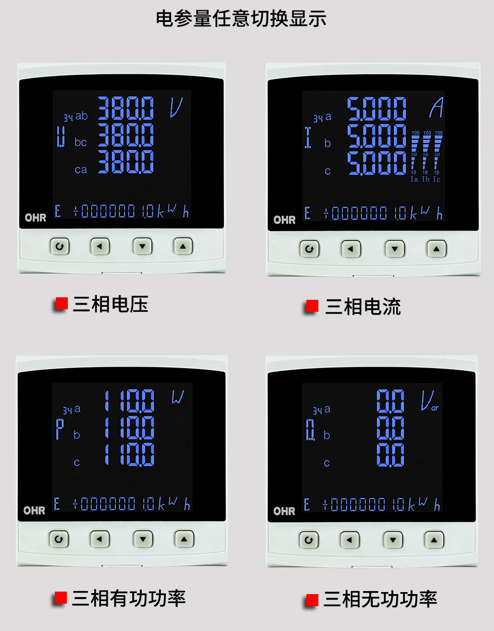 OHR-C500系列液晶綜合電量集中顯示儀是一款用于中低壓系統(tǒng)智能化裝置,集數(shù)據(jù)采集和控制功能于一身,具有電力參數(shù)測量及電能計量為一體。它采用大規(guī)模集成電路和高亮度長壽命的LED顯示器并支持RS485接口MODBUS通訊協(xié)議或多種協(xié)議。