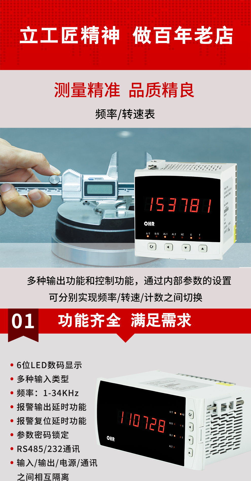 OHR-B400系列頻率/轉(zhuǎn)速表采用全自動貼片封裝工藝,具有很強(qiáng)的抗干擾能力,并具有多種輸出功能和控制功能,與多種轉(zhuǎn)速傳感器配套,廣泛運(yùn)用于電力、石化、冶金、輕工、制藥、航空等諸多領(lǐng)域。